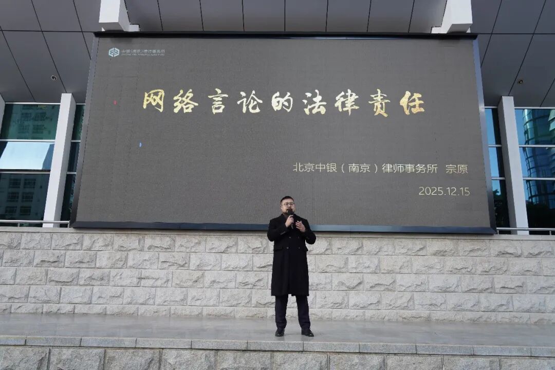 2025年12月15日,中银南京所高级合伙人、青工委主任宗原律师一行,受邀赴南京市第一中学本部,为现场的三千余名高中生作《网络言论的法律责任》主题分享。