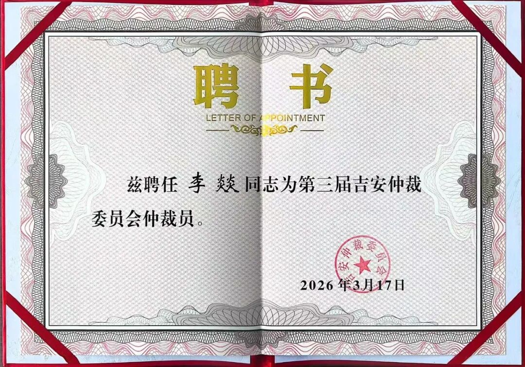 中银佳绩 | 本所李燚律师两个月内连续获聘唐山、吉安、连云港等仲裁委员会仲裁员